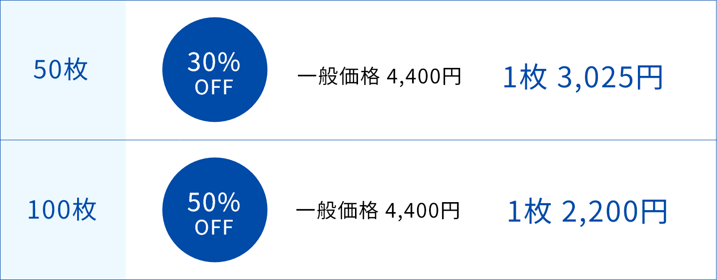 回数チケット制にて常価格より大幅にお得なプランをご用意しています。