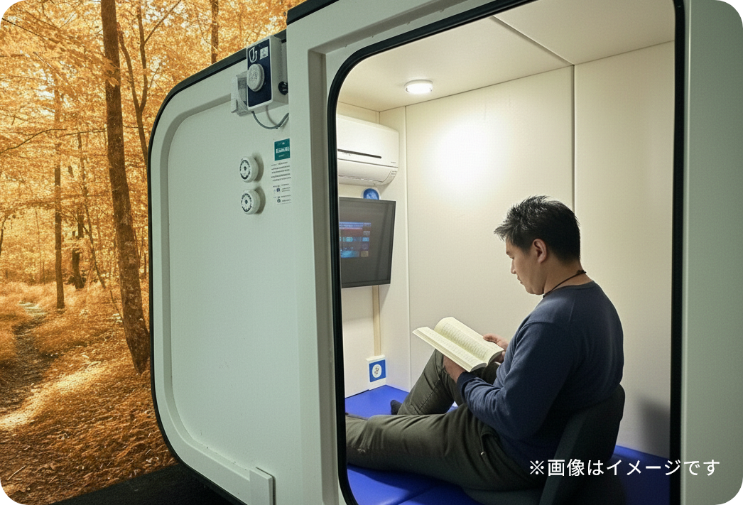 酸素BOXの静けさが、集中と癒しの時間をより深めてくれます。