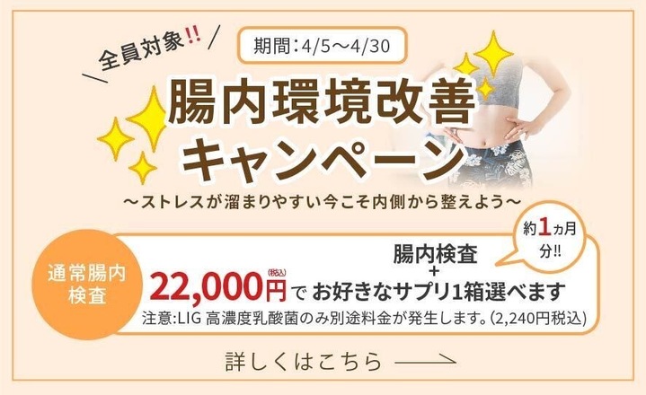 - 対象:22,000円(税込)で腸内検査をおこなった方のみ