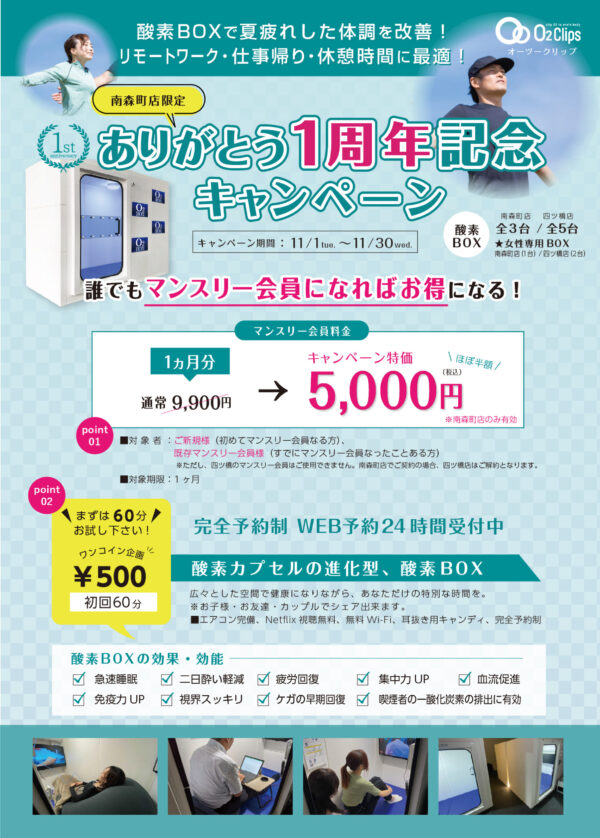 日ごろの感謝を込めて、 11月1日(火)~11月30日(水)の期間、マンスリー契約がお得になる1周年記念キャンペーンの開催が決定しました✨