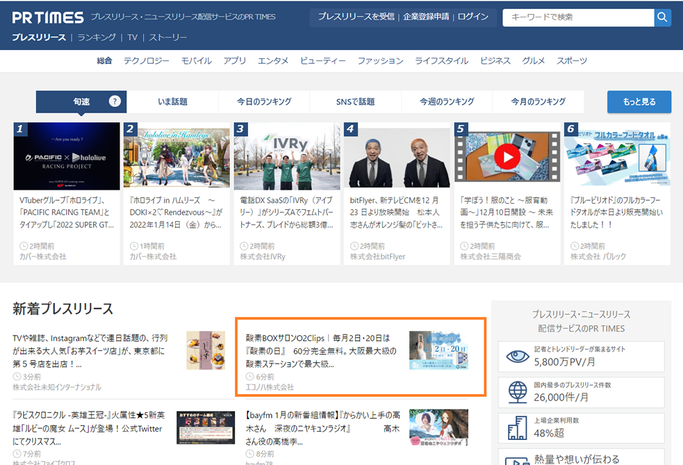 【PR TIMES】に掲載されました!