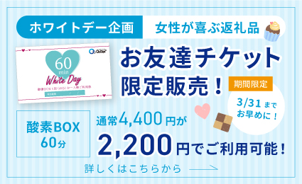 • 内容:限定チケット購入で酸素BOX60分の利用、通常4,400円→50%OFFの2,200円でご利用可能