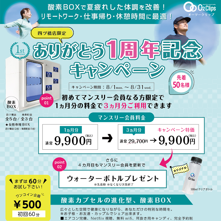 いつも酸素BOXサロン O2Clips をご利用いただき、ありがとうございます❕